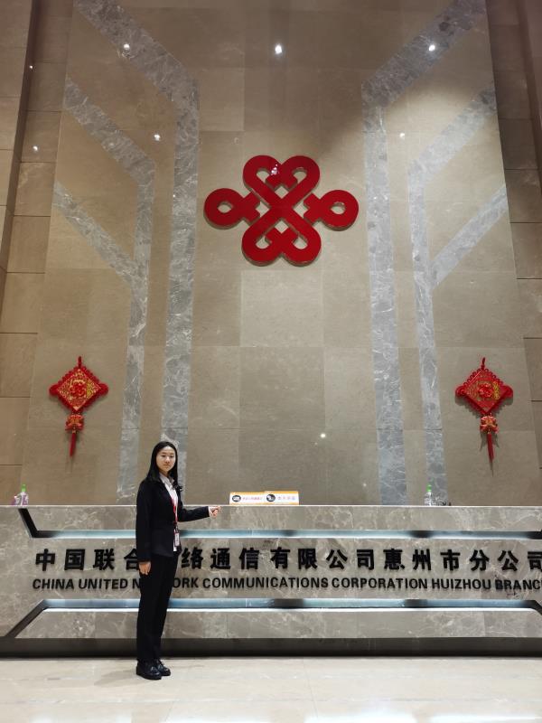 20196月畢業后進入廣東惠州聯通工作。目前實習期已滿開始輪崗見習,目標方向為云等新業務。從大山里走出的小姑娘從事著最前沿的通訊業務,開始為社會做貢獻啦!