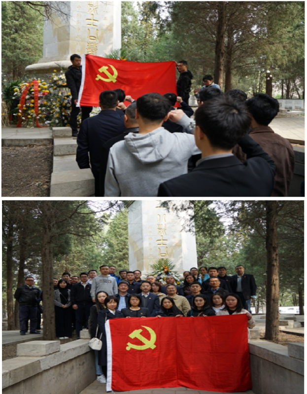 在莊嚴(yán)肅穆的“三一八烈士墓”前,面對著墓碑,沉重莊嚴(yán)的氣氛油然而生,中心趙理峰主任和李成偉書記向紀(jì)念碑敬獻(xiàn)了花籃,所有人懷著崇敬之情,鞠躬向烈士們表示沉痛的哀悼,銘記他們不怕犧牲、甘于奉獻(xiàn)的革命英雄主義精神。