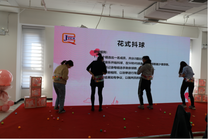 在內容豐富、趣味十足的游戲環節,設置了“花式抖球”、“踩蹦蹦”、“手機搖一搖”等項目,游戲精彩紛呈、現場氣氛熱烈高潮迭起、歡樂無限,每位女神在娛樂中綻放了笑容。