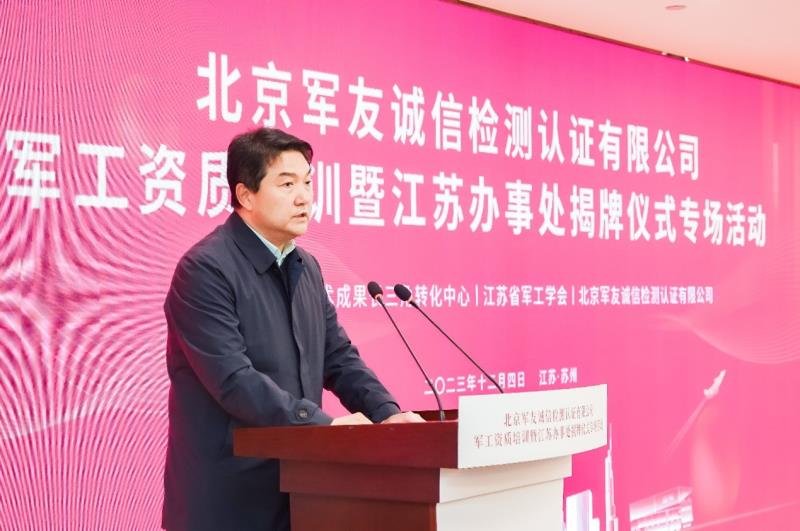 為貫徹落實(shí)習(xí)近平總書記關(guān)于深入推進(jìn)長(zhǎng)三角一體化發(fā)展的指示要求,更好的服務(wù)支撐國(guó)家創(chuàng)新驅(qū)動(dòng)發(fā)展戰(zhàn)略和民參軍、軍轉(zhuǎn)民深度發(fā)展戰(zhàn)略,助力長(zhǎng)三角區(qū)域的科技創(chuàng)新和產(chǎn)業(yè)創(chuàng)新深度融合發(fā)展,由先進(jìn)技術(shù)成果長(zhǎng)三角轉(zhuǎn)化中心(以下簡(jiǎn)稱轉(zhuǎn)化中心)、江蘇省軍工學(xué)會(huì)、北京軍友誠(chéng)信檢測(cè)認(rèn)證有限公司(以下簡(jiǎn)稱軍友誠(chéng)信)聯(lián)合主辦的“先進(jìn)成果長(zhǎng)三角轉(zhuǎn)化中心孵化基地專場(chǎng)活動(dòng)”在蘇州舉行。國(guó)家國(guó)防科工局經(jīng)濟(jì)技術(shù)發(fā)展中心(以下簡(jiǎn)稱發(fā)展中心)副主任王海鵬、轉(zhuǎn)化中心主任張杰、江蘇省工業(yè)和信息化廳二級(jí)巡視員譚曉平、江蘇省軍工學(xué)會(huì)副理事長(zhǎng)習(xí)仁國(guó)、蘇州市相城區(qū)副區(qū)長(zhǎng)邢鵬、軍友誠(chéng)信總經(jīng)理周濤出席開(kāi)幕式,以及來(lái)自軍地有關(guān)部門和單位、活動(dòng)主辦方、科研機(jī)構(gòu)、知名企業(yè)的領(lǐng)導(dǎo)和代表共計(jì)130余人參加會(huì)議。軍友誠(chéng)信副總經(jīng)理謝志磊主持開(kāi)幕式。