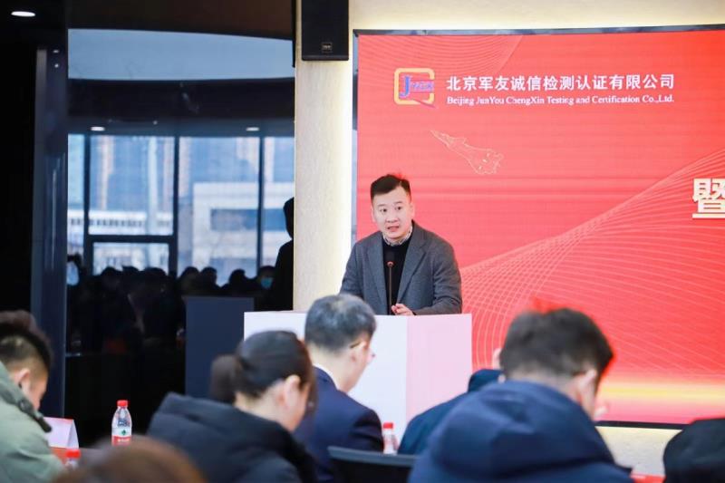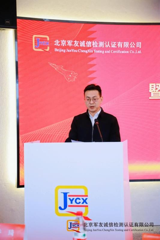 軍友誠信公司總經理周濤致辭感謝支持軍友誠信發展建設的地方政府、軍工企事業單位和廣大獲證客戶。表態牢記質量強軍使命,錨定建成國內一流合格評定綜合服務機構的發展目標,扎根東北,服務東北國防軍工質量建設,著重為軍工科研生產單位、為“民參軍”企業提供綜合賦能服務;服務商業航天等優勢資源,努力打造融合創新、服務裝備、服務認證認可、服務成果轉化的“東北樣板”,開啟創新服務東北三省一區新篇章。