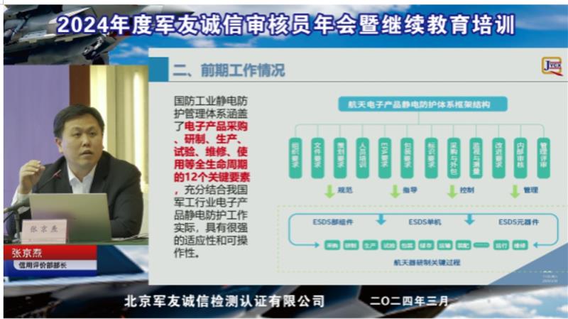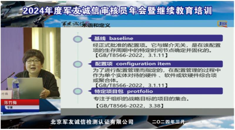 會議邀請到了原國防科工委科技與質量司司長高志強,就國防科技工業發展情況作了介紹。會議還邀請軟件專家陳竹梅老師講授了《計算機軟件質量管理體系審核要點》。為了提升專業技術水平,技術委員會主任兼管理者代表石二奎作《審核案例編制說明》講解,質量保證部部長王淘就《2023年雙隨機一公開檢查工作情況通報》及《審核相關問題》為題作了講解。為了進一步擴大及鞏固市場,信用評價部部長張京燾作靜電防護業務情況介紹,市場部部長喬琦就目前市場形勢及發展情況作了介紹。為了進一步提升人員管理效率,體系管理部部長劉婷宣講了《審核員管理規范及要求》的內容。培訓結束后,組織了線上考試。
