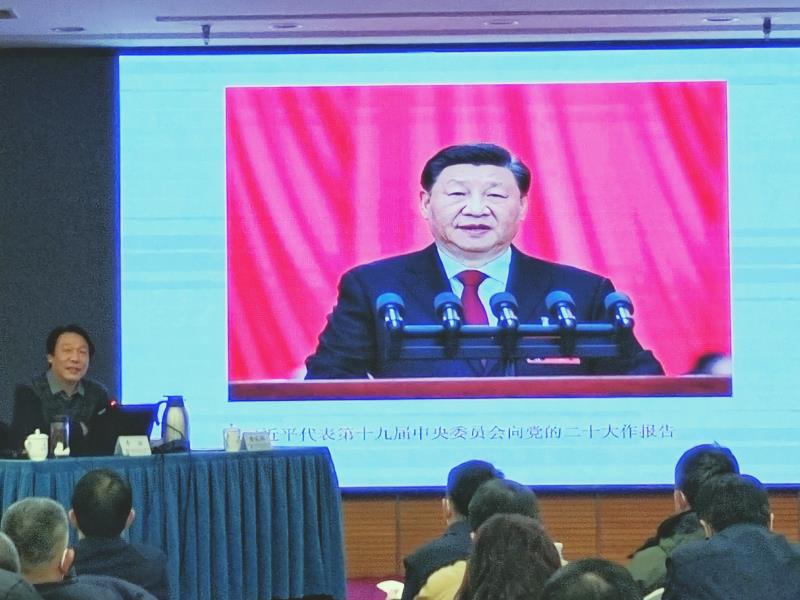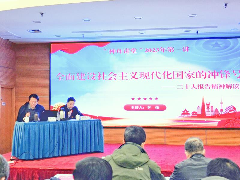 李拓教授從報告主體框架與邏輯結構、報告的新論斷新思想和結語三部分解讀黨的二十大精神。以新的視角全面、系統、深入對黨的二十大精神進行了解讀。授課內容豐富、深入淺出、旁征博引,既有理論的高度,又有實踐的深度,對更好地學習領會、準確把握、貫徹落實黨的二十大精神,建設“專精高特新”專業機構,具有重要的指導和促進作用。