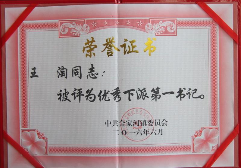王淘同志飽滿的工作熱情和高尚的政治素質,贏得了當地政府的肯定和村民的愛戴。七一前夕,黃家溝村黨支部被金家河鎮黨委評為優秀黨支部,王淘同志也被鎮黨委評為優秀第一書記和脫貧攻堅最美村官。漢中市黨委授予王淘同志全市優秀第一書記稱號。王淘同志的駐村工作得到了國防科工局機關和國防科工局協作配套中心的肯定,這是他本人的成績,也是軍友誠信認證公司的榮譽和驕傲。