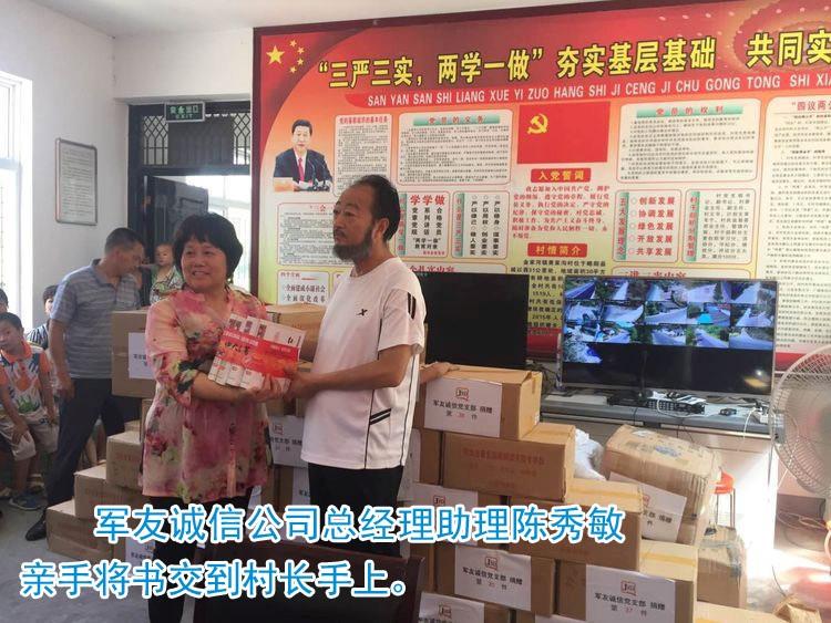 老帥哥大胡子張村長代表全村兒童接受捐贈。每個娃娃都會得到一套四大名著,低齡兒童還有一套安徒生童話全集。